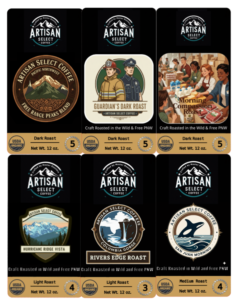At Artisan Select Coffee, we pride ourselves on offering an exclusive selection of meticulously roasted beans from the Pacific Northwest’s finest craft roasters. Our blends embody a commitment to quality, sustainability, and community—delivering exceptional flavor and ethical integrity in every cup. Experience the artistry of true craft roasting, infused with purpose by our socially conscious Guardian’s Dark Roast. Elevate your coffee experience with us—where excellence meets responsibility.